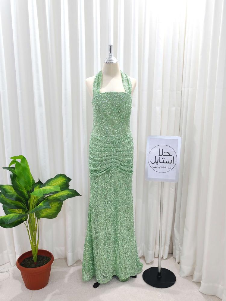 فستان سهرة2026 أخضر لامع – إطلالة هوليوودية ساحرة