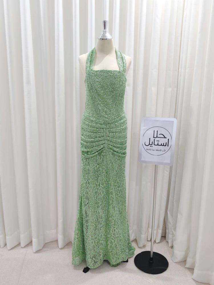 تألقي بإطلالة مستوحاة من سحر السجادة الحمراء مع هذا الفستان الأخضر اللامع المصمم ليجعل حضورك استثنائيًا. خامته المليئة بالترتر تعكس الإضاءة من كل زاوية، فتمنحك توهجًا يخطف الأنظار في أي مناسبة. ولإكمال إطلالتك الفاخرة، اكتشفي المزيد من القطع في فساتين السهرة لدينا.
