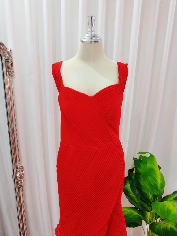 استعدي لتأسري القلوب بهذا الفستان الأحمر الفاخر، الذي يترجم معنى الأنوثة الجريئة والجاذبية المطلقة. إنه أكثر من مجرد فستان